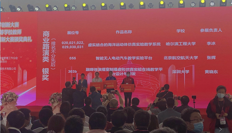 5月21日,第56屆中國(guó)高等教育博覽會(huì)在青島開(kāi)幕,展會(huì)期間“全國(guó)高校教師教學(xué)創(chuàng)新大賽——第六屆全國(guó)高等學(xué)校教師自制實(shí)驗(yàn)教學(xué)儀器設(shè)備創(chuàng)新大賽”決賽同期舉行。來(lái)自深圳大學(xué)傳播學(xué)院的虛擬仿真參賽項(xiàng)目“融媒體虛擬仿真制播教學(xué)創(chuàng)作平臺(tái)”,最終成功斬獲兩個(gè)全國(guó)二等獎(jiǎng):高校教師教學(xué)創(chuàng)新大賽自制教儀虛擬仿真類(lèi)全國(guó)二等獎(jiǎng);項(xiàng)目商業(yè)化路演銀獎(jiǎng)(全國(guó)二等獎(jiǎng),全國(guó)三個(gè)銀獎(jiǎng)項(xiàng)目之一),實(shí)現(xiàn)這個(gè)賽事深圳大學(xué)文科類(lèi)零的突破。