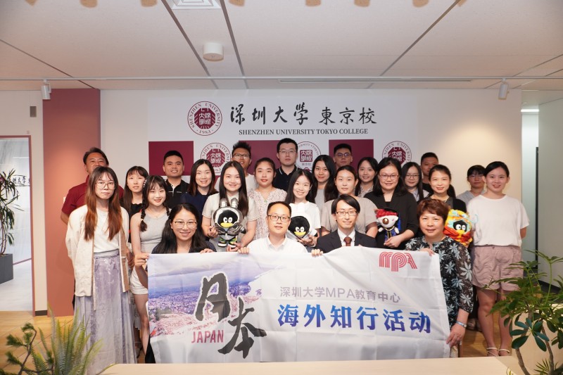MPA研學團來到坐落于日本東京新宿區四谷的深圳大學東京校,深圳大學東京學院院長藍一洲熱情接待了研學團,帶領研學團師生參觀深大東京學院及教學設施。