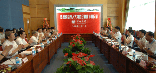 深圳大學(xué)黨委書記江潭瑜代表全校師生和教職工感謝市人大常委會的關(guān)心、支持和鼓勵。慰問團(tuán)還聽取了校領(lǐng)導(dǎo)匯報(bào)學(xué)校教育科研工作遇到的困難和問題,傾聽教師的心聲和辦學(xué)建議。校長章必功表示希望改革、完善管理體制,使學(xué)校在辦高水平、有特色大學(xué)的道路上能快步前進(jìn)。