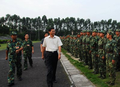 江潭瑜書記等到廣州國防園慰問軍訓一團