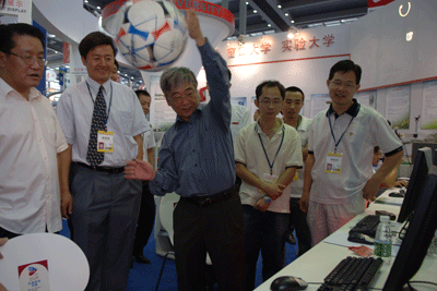 10月16日上午,章必功校長到我校高交會展區視察,科研處領導介紹了本次參展的總體概況和目前的成交情況,各項目負責人向章校長介紹了每個參展項目,章校長一一詢問了項目的科技含量、應用前景和進展情況,并饒有興致地參與了部分參展項目的互動。