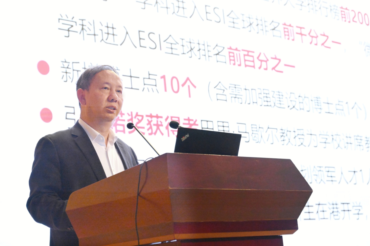 毛軍發以“賡續前行,全力推進‘雙一流’創建”為題,對本學期行政工作作出總結。他指出,2024年是實現學校“十四五”規劃目標、加快創建雙一流大學的“淮海戰役”之年,學校各方面建設成果可圈可點,學科建設穩中有進,師資隊伍建設和人才培養取得實效,教學改革、專業建設、教材建設、學生創新創業等方面進展明顯,數智賦能學生工作頗具亮點,科研創新再攀高峰,國際化建設又結碩果。他特別指出學校2024年的十大標志性工作進展:學校在US News排行榜位列第187,繼軟科之后,再次進入公認的四大權威世界大學排行榜前200名;化學學科進入ESI全球排名前千分之一,微生物學、經濟學與商學學科進入ESI全球排名前百分之一;新增博士點10個(含需加強建設的博士點1個),新增數量并列全國第一;引進諾獎獲得者巴里·馬歇爾教授為學校講席教授,17名“海外優青”獲評通過,創歷史新高;深圳大學香港學院首屆95名新生在港開學,是首個赴港開辦本科辦學機構的內地高校;學校2024高考錄取分數線再創新高;巴里·馬歇爾教授獲中華人民共和國國際科學技術合作獎,學校國家與省級文科獎項均創新高;首次獲批國家自然基金創新研究群體項目和國際合作創新研究團隊項目,首次獲國家基金青年學生基礎研究項目(博士研究生)申報資格并獲10個項目;咨政服務工作有新貢獻;2024年度中國國際大學生創新大賽國賽,深大人再創歷史新高,獲得4枚金牌;深大學子在2024年巴黎奧運會共為中國隊奪得3金2銀3銅,創深圳大學運動員參加奧運會歷史最佳成績;學校粵海校區一號天橋開通人行功能。此外,學校附屬醫院順利運行,“雙百行動”工作推進順利。