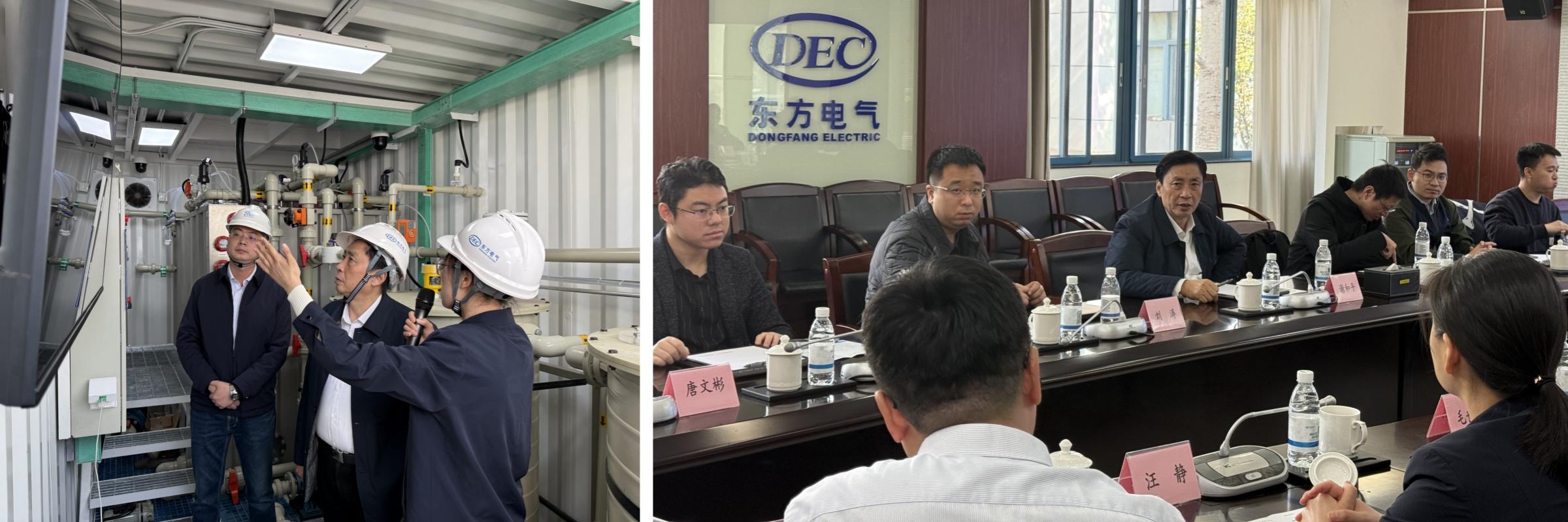 2025年1月20日,中國工程院院士、深地工程智能建造與健康運維全國重點實驗室主任,深圳大學深地科學與綠色能源研究院院長謝和平帶隊赴廣東南沙考察東福研究院、東方重機建設的“謝和平院士團隊-東方電氣”海水無淡化直接電解制氫規模化研發陸地試驗基地,開展現場工作調研。東方電氣華南分公司籌備組組長毛世勇等領導陪同,東方重機黨委書記、董事長王衛東,東方重機副總經理計海和東方研究院副總經理、東福研究院總經理劉泰生在現場熱情接待謝院士一行。調研過程中,謝院士深入東方重機廠區及試驗基地,了解東方重機企業情況,并親切慰問了在一線辛勤工作的聯合試驗團隊科研人員,聽取了東福研究院關于項目進展的詳細匯報,全面了解了海水無淡化直接電解制氫技術研發進展及產業轉化情況。