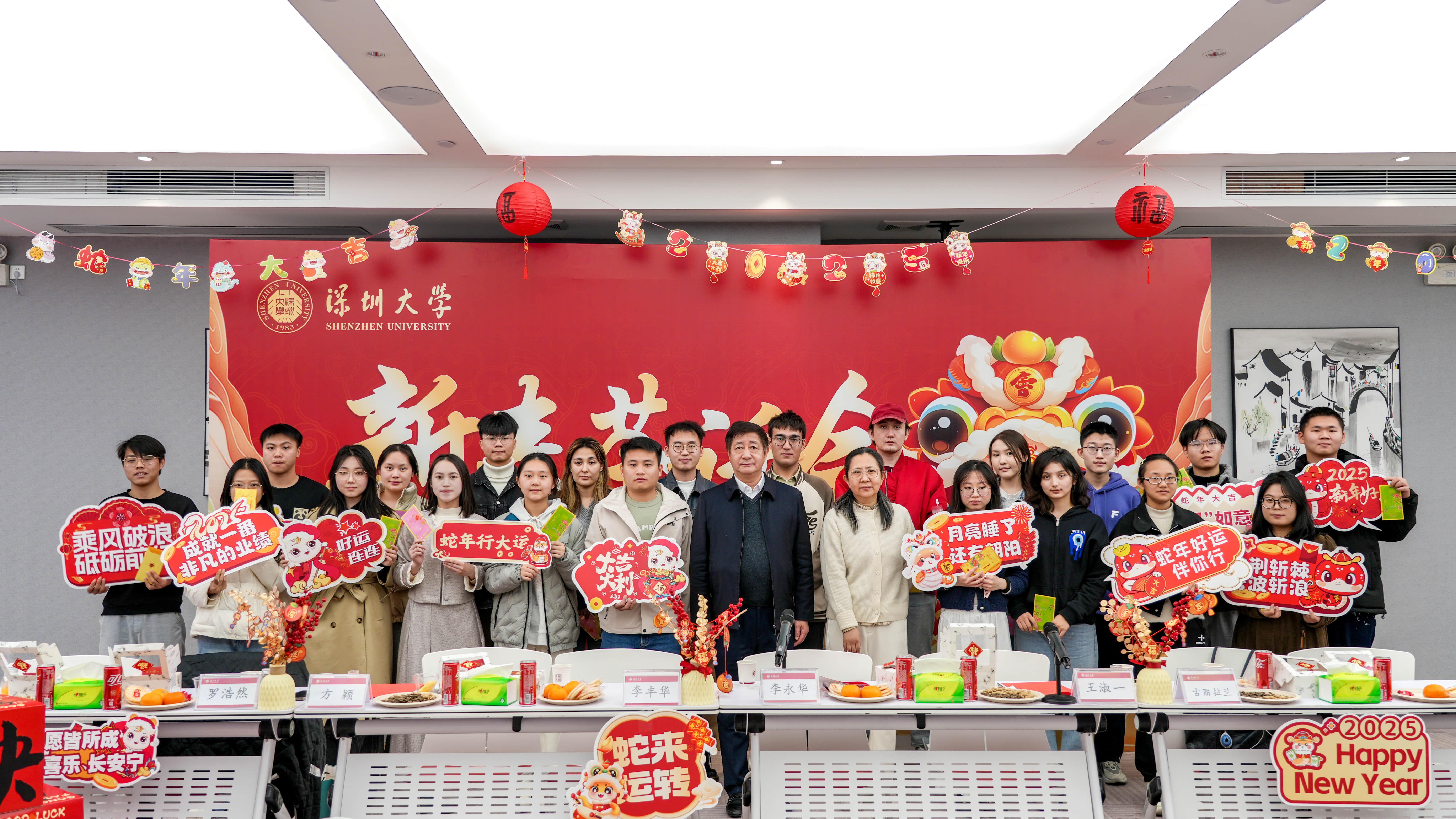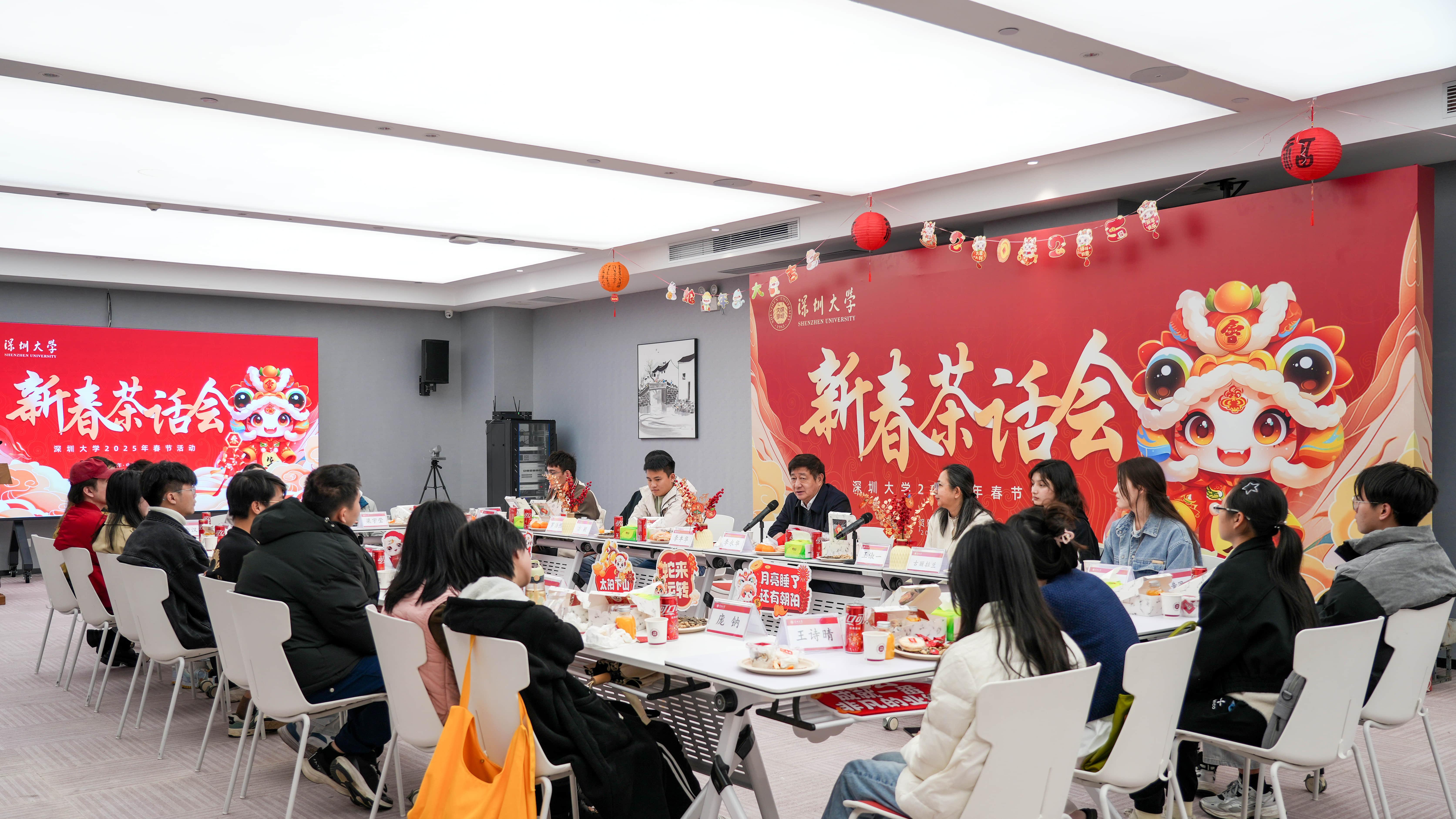 1月27日,在2025乙巳蛇年春節來臨之際,深圳大學留校學生春節茶話會在粵海校區紫薇齋106室、麗湖校區守正樓A213室同時舉辦,校長毛軍發、副校長汪永成出席粵海校區茶話會,副校長李永華出席麗湖校區茶話會,與各學院留校學生代表們共聚一堂,聊收獲、說目標、話家常,共同為即將到來的蛇年新春寄予美好祝福。黨政辦公室、黨委組織統戰部、校團委、黨委學生工作部、麗湖校區管理辦及各學院相關負責人參加茶話會。