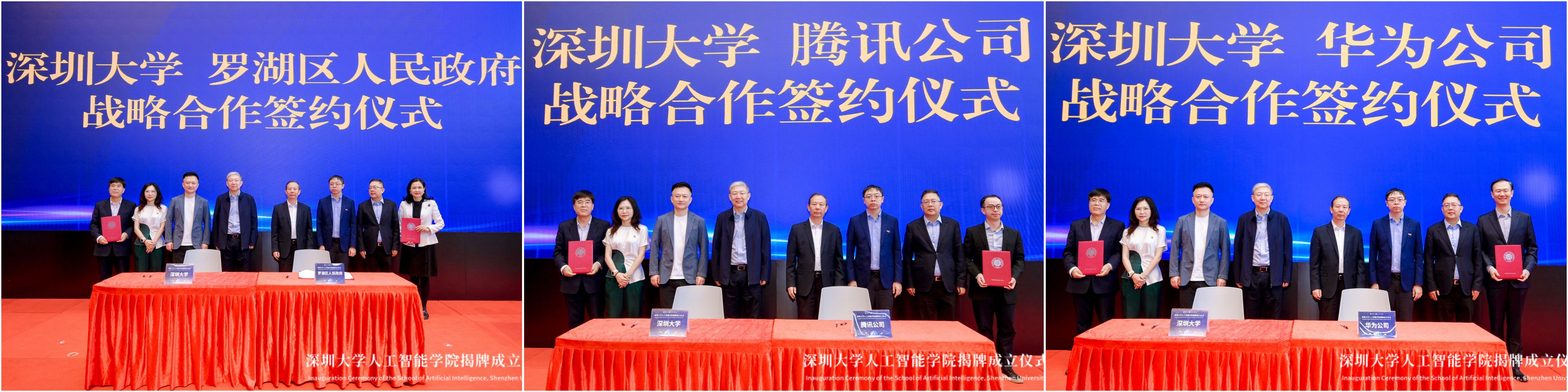 為進一步深化產(chǎn)學研合作,推動人工智能技術(shù)的應用與產(chǎn)業(yè)轉(zhuǎn)化,深圳大學人工智能學院分別與羅湖區(qū)人民政府,騰訊、華為等多家知名企業(yè)與機構(gòu)簽署了戰(zhàn)略合作協(xié)議,通過建立長期穩(wěn)定的合作關(guān)系,整合各方資源,共同開展人工智能領(lǐng)域的技術(shù)研發(fā)、人才培養(yǎng)和產(chǎn)業(yè)應用,構(gòu)建從政策引領(lǐng)到產(chǎn)業(yè)應用的全鏈條合作模式。