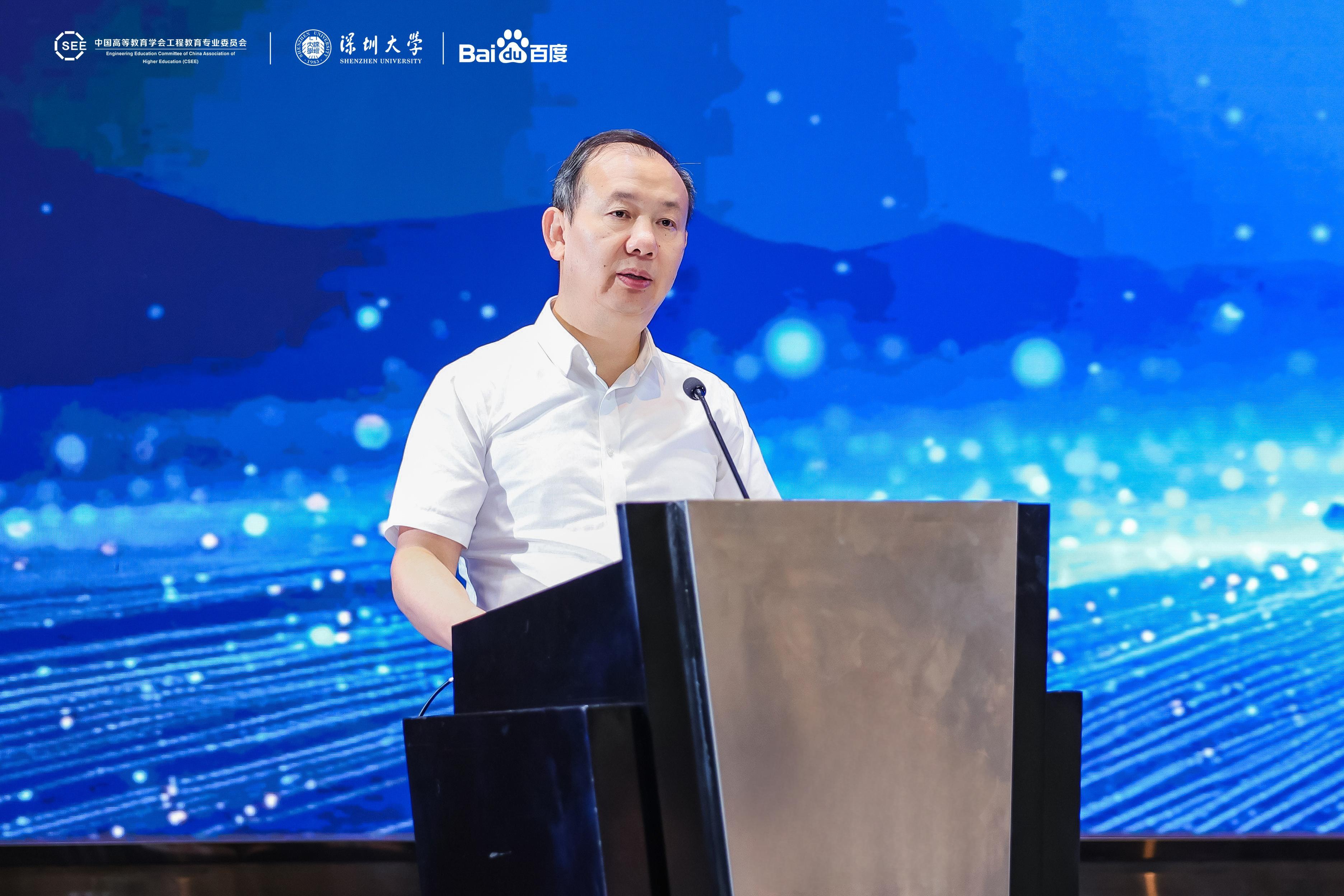 毛軍發在致辭中表示,工程教育是連接科技創新與產業發展的核心紐帶,既面臨著教育范式重構的時代機遇,也肩負著跨學科人才培養的歷史重任。面對機遇與挑戰,高校應大力推動資源整合與協同創新,人工智能賦能工程人才培養,助力工程教育高質量發展。深圳大學將以人工智能學院建設為起點,深化產學研協同創新,為粵港澳大灣區建設世界級科創中心貢獻深大的力量和智慧,以實際行動踐行教育強國、科技強國、人才強國的時代使命。