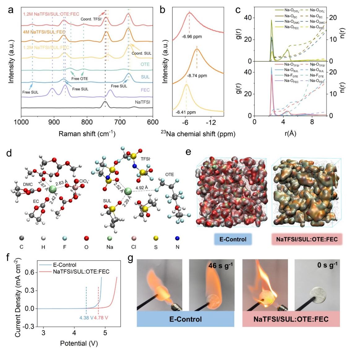 3. 深圳大學化學與環境工程學院張黔玲教授團隊在材料領域頂尖期刊Nano-Micro Letters(影響因子31.6,中科院JCR 1區,TOP期刊)發表了題為“Sulfolane?Based Flame?Retardant Electrolyte for High?Voltage Sodium?Ion Batteries”的研究論文。該團隊碩士生何鉉龍為論文第一作者,深圳大學張黔玲教授、胡江濤副教授、有研(廣東)新材料技術研究院肖必威教授為該論文共同通訊作者,深圳大學為第一作者單位和第一通訊單位。
